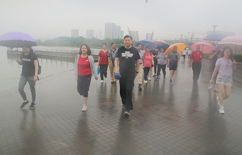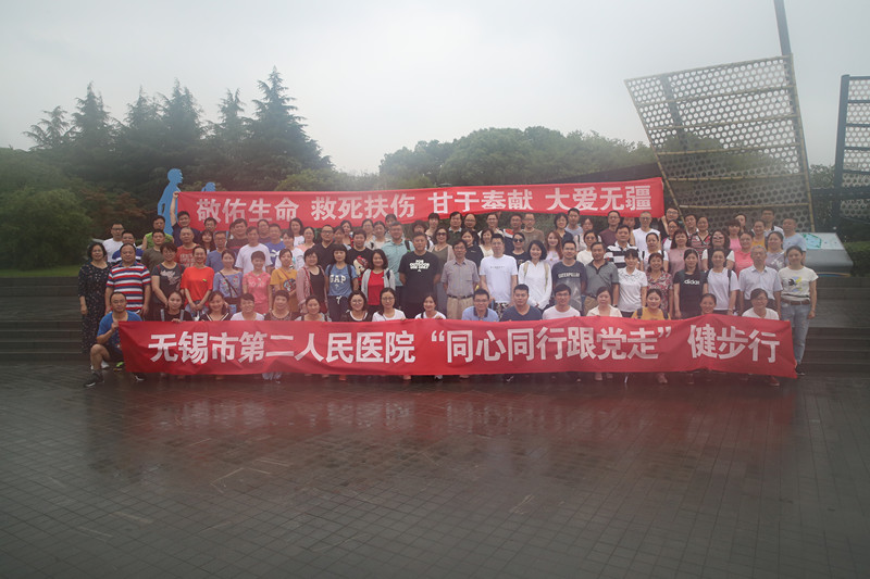 6月30日早晨,来自无锡市第二人民医院的100多名党团员代表、民主党派人士齐聚无锡蠡湖百米高喷,在院党委副书记鲁晓杰的带领下,沿着蠡湖开展“同心同行跟党走”健步行活动,共同庆祝中国共产党成立98周年,党委副书记、纪委书记赵鸽,副院长肖大江等院领导也一起参加了活动。 06:30大雨倾盆,但丝毫没有影响大家团结的热情和活动的热情,大家准时到达集合点汇合,健步行活动在院领导的带领下准时开始。在历经一个多小时的健步行活动中,天空中的雨时而大时而小,长长的队伍在山水中已然成为一道独特的风景,大家有的撑着伞,有的穿着雨衣,相互簇拥着,你追我赶;相互激励着,其乐融融。一路上,院领导与同行的党员代表、民主党派成员、青年代表就医院发展、学科建设、人才培养等医院发展话题畅谈交流,互换意见。 健步行活动接近尾声了,雨停了,但大家的热情仍然高涨,大家纷纷表示,在中国共产党成立98周年之际参加这样的庆祝活动很有意义,既锻炼了意志,又陶冶了情操,既彰显了医院民主党派与中国共产党肝胆相照、荣辱与共的合作初心,又坚定了全体党员、民主党派与青年人才团结一心跟党走的坚定信念,大家同时也表示,要继续立足本职岗位,同心同德,上下齐心,为医院高质量发展贡献自己的力量。